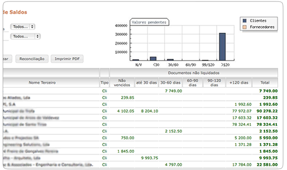 Com a idade de saldos poderá tomar decisões sobre as cobranças e contactar os clientes, mantendo saudável a tesouraria da sua empresa.